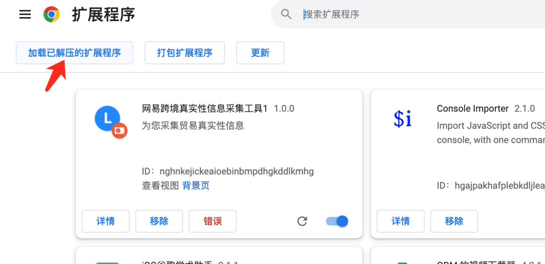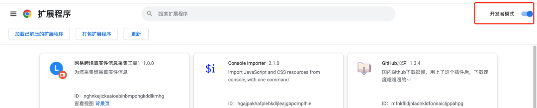 开发中的插件可以在chrom 浏览器的管理扩展中打开开发者模式