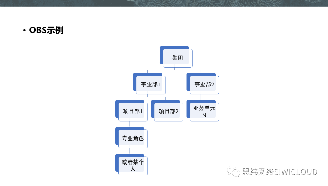 项目WBS分解结构确认后,还要建立项目的OBS分解结构,即项目的组织机构体系。把大到项目各阶段,小到项目的工作包/工作项乃至最小的活动任务分解和分配到具体执行管理、实施操作组织单元或个人,以实现项目所有活动的任务责任落实、管理落实的目的。