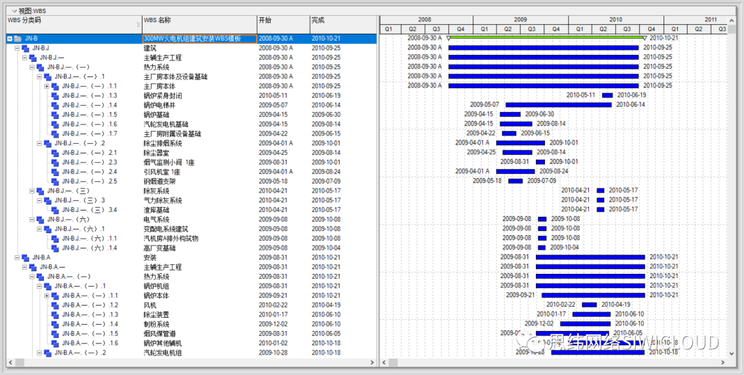 工作分解结构(Work Breakdown Structure,WBS)是编制项目进度计划和进度控制的基础,同时也为项目费用估算、费用控制、质量控制和文件控制等提供便利。WBS是以可交付物为导向按既定原则对项目所有要素进行层级划分、同级排列的分解结构,归纳和定义了项目的工作范围,该结构每下降一层级代表项目工作的更详细内容。直至将项目工作内容逐级分解成较小的、较易控制的管理单元或工作包,以便于项目进度计划的编制与控制、以及工作责任的更好落实与监控。