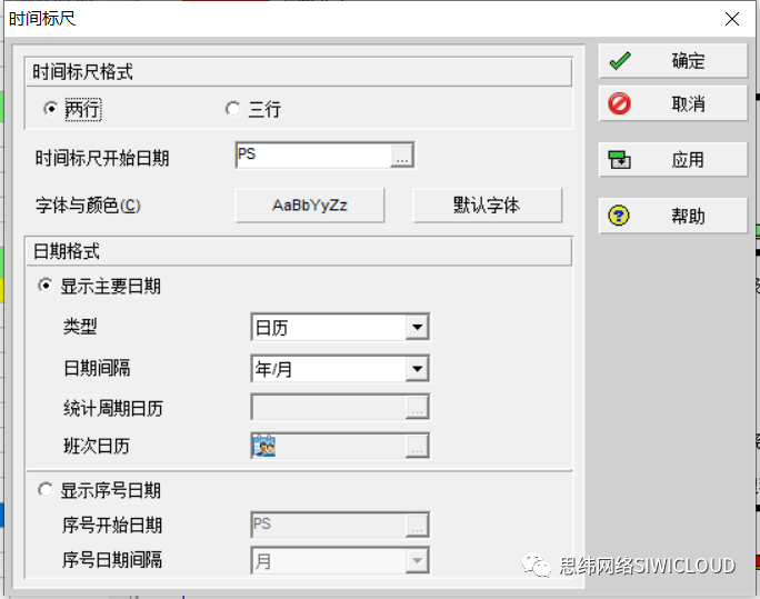 4.单击“字体和颜色”按钮可对时间标尺和栏位标题的字体类型、大小和颜色进行格式化。单击“默认字体”可将时间标尺更改为其原始字体和颜色设置。
