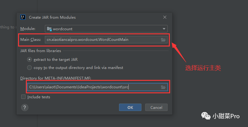 3、选择运行的类,自动生成的文件要放在src路径下。