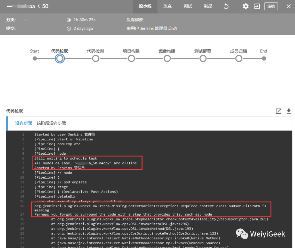 All nodes of label ‘Jenkins项目名称-_50-m4dq2’ are offline