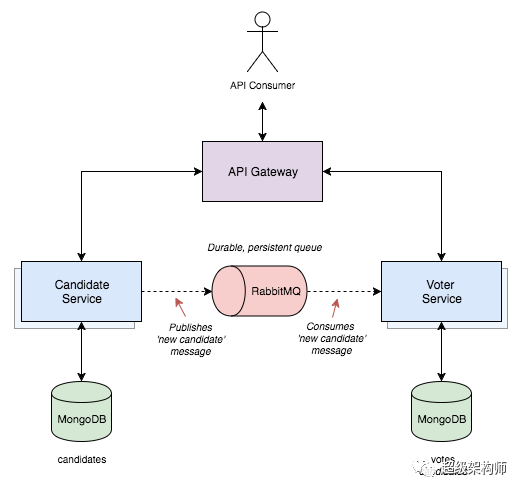 为了应对这些挑战,我们可以使用一个中间服务来处理两个微服务之间的通信,也称为“消息代理”。