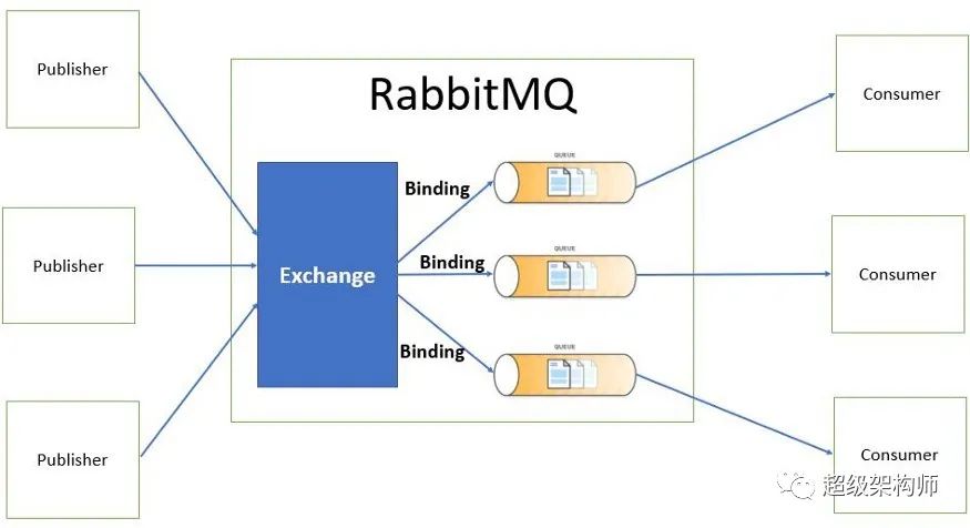当发布者发送消息时,它被 Exchange 接收,然后 Exchange 将其发送到目标队列。消息保持在队列中,直到接收方接收并处理它。