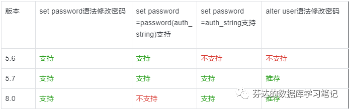 4. set password 语法在不同版本支持的选项有区别