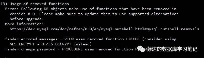 以下是 MySQL8.0 已删除的函数的列表,第一个元素是已删除的函数名,第二个元素是推荐使用的替代函数。