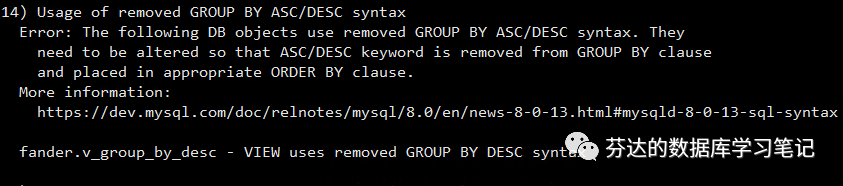 下发到数据库以下 SQL,如果检查发现有结果,则返回 Upgrade_issue 对象。