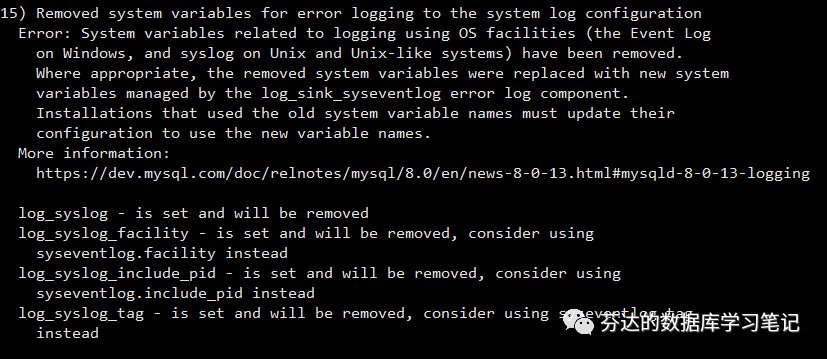 Following system variables that are not defined in your configuration file will have new default values. Please review if you rely on their current values and if so define them before performing upgrade.
