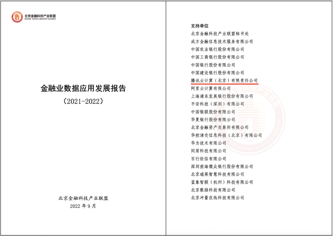9月29日,北京金融科技产业联盟正式发布了《金融业数据应用发展报告(2021-2022)》(以下简称《报告》),腾讯云作为主要支持单位之一,参与报告重点内容的编撰,并输出了多个典型实践案例,为金融行业深化数据综合应用、释放数据要素潜能提供有益参考。