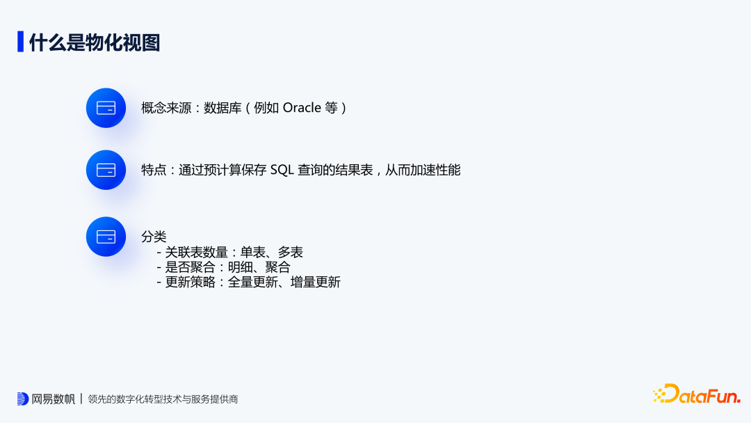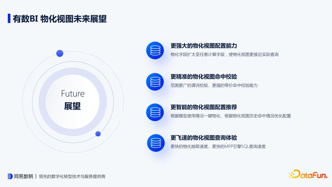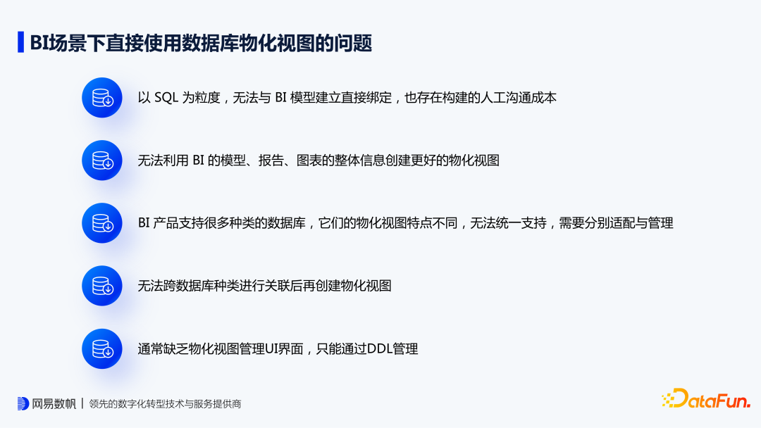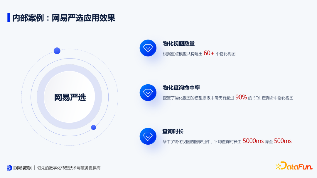 导读 众所周知,BI 工具因其灵活的使用方式和便捷的结果展示,已成为生产运营和辅助管理决策的重要工具。网易有数 BI 在用户实际使用中,发现多表复杂关联、无效扫描全表数据等许多拖慢性能的现象。为提升用户体验,加速查询性能,有数 BI 设计开发了物化视图产品功能体系,取得了非常好的效果。