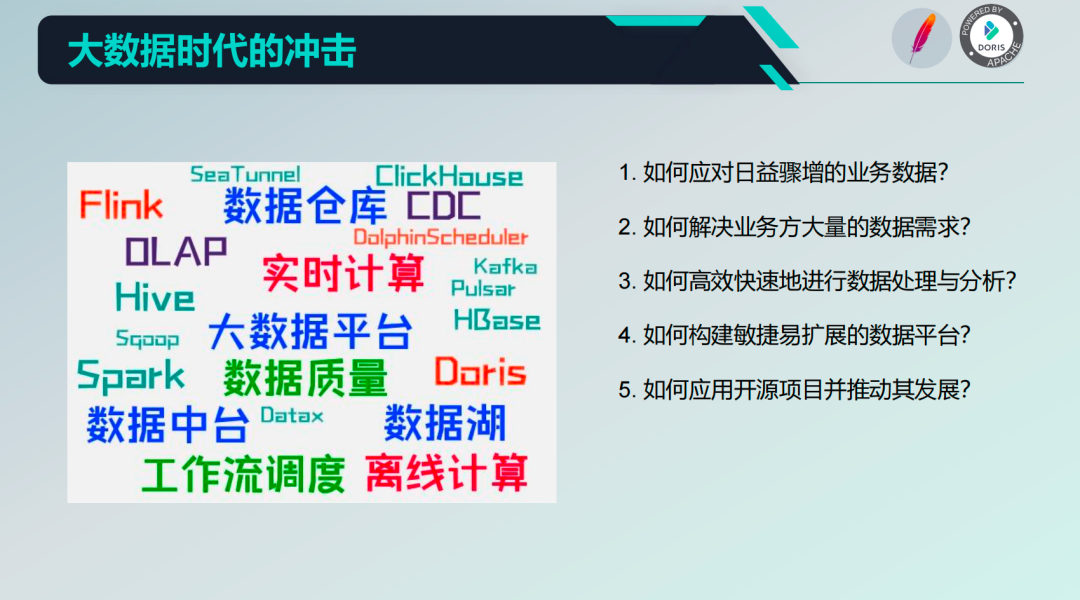1.核心存储层选择 Doris 来提供统一数仓的能力,可以同时支持实时数据服务、交互数据分析和离线数据处理场景。