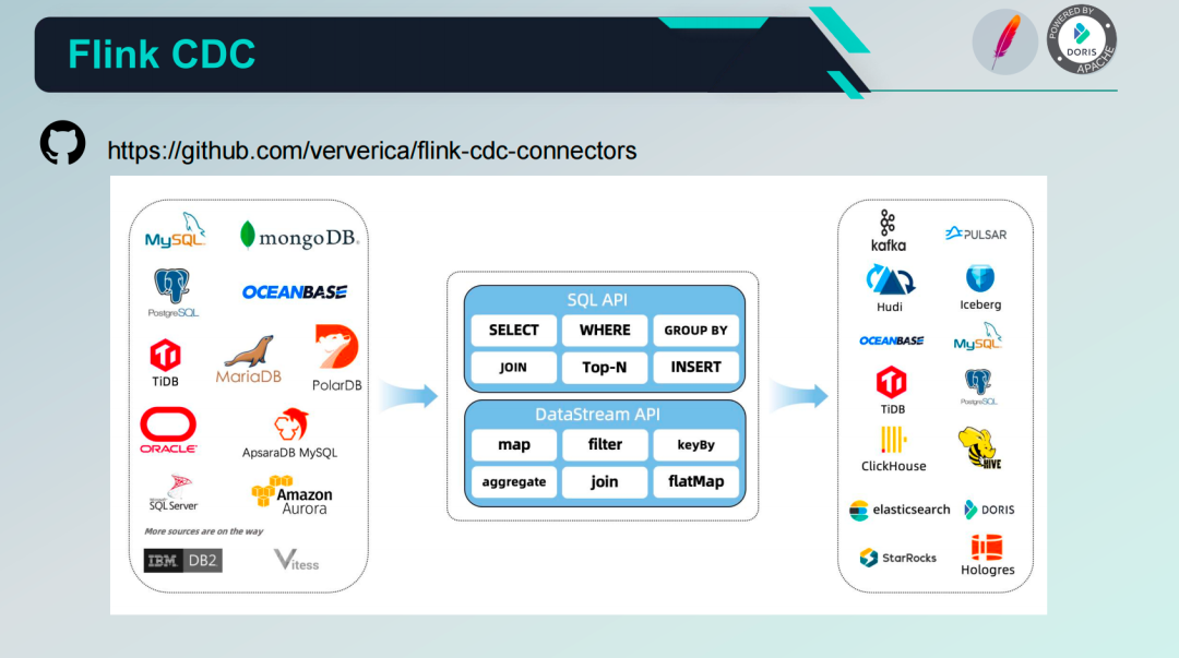 无缝对接 Flink:无缝对接 Flink 生态,利用 Flink 众多 Source 及 Sink 能力,可发挥 Flink 双流、流维关联等能力。