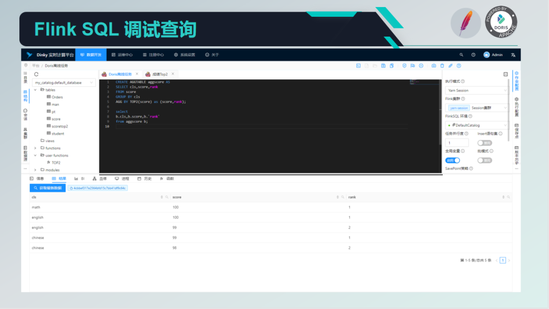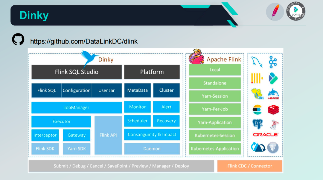 选择以 Doris 为存储层:Dinky 未来将以 Doris 为最佳存储层,分享更多的 Doris 数仓方面实践。