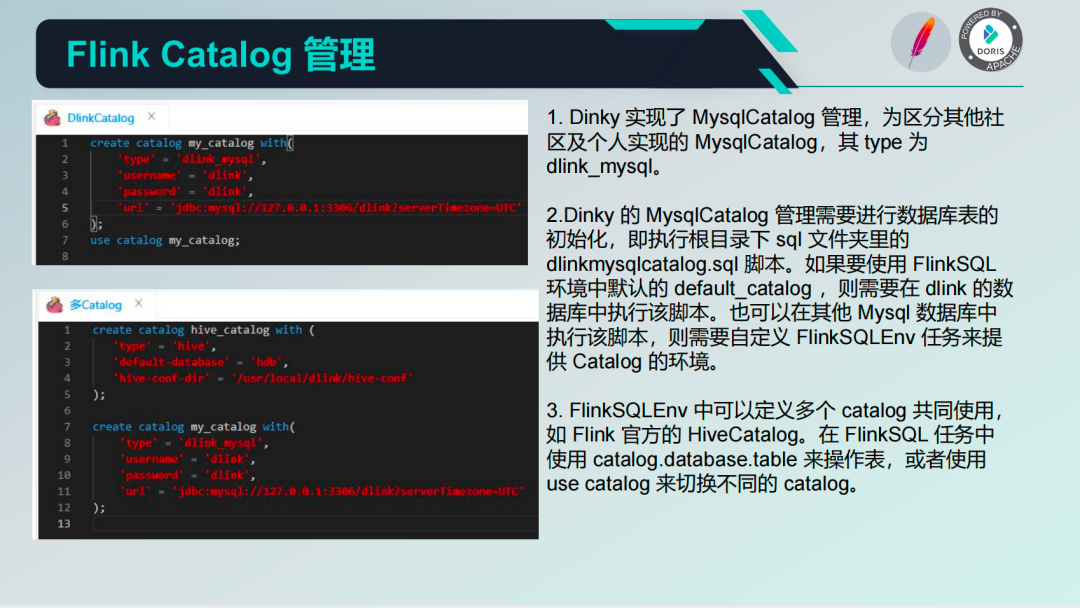 支持 Doris 元数据的可视化管理:Dinky 目前只能查询 Doris 等的元数据,通过 DDL 语句进行元数据管理。后续需要支持对 Doris 等数据源的可视化管理,提升沉浸式体验。