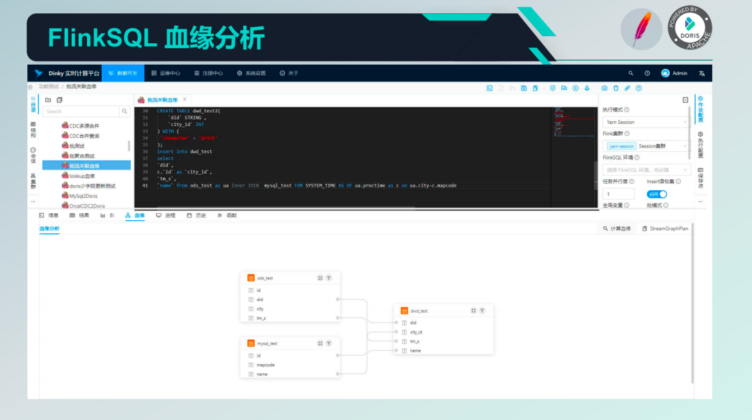 Dinky 也提供了 Doris 的血缘分析能力。该血缘分析主要是基于 Alibaba Druid 来实现的。