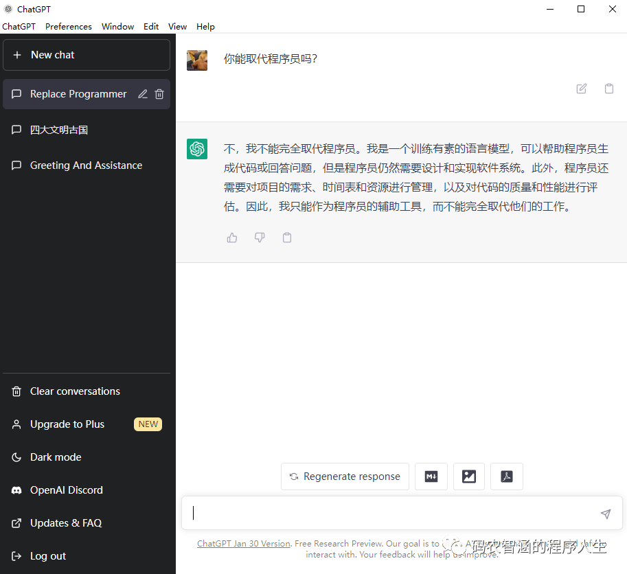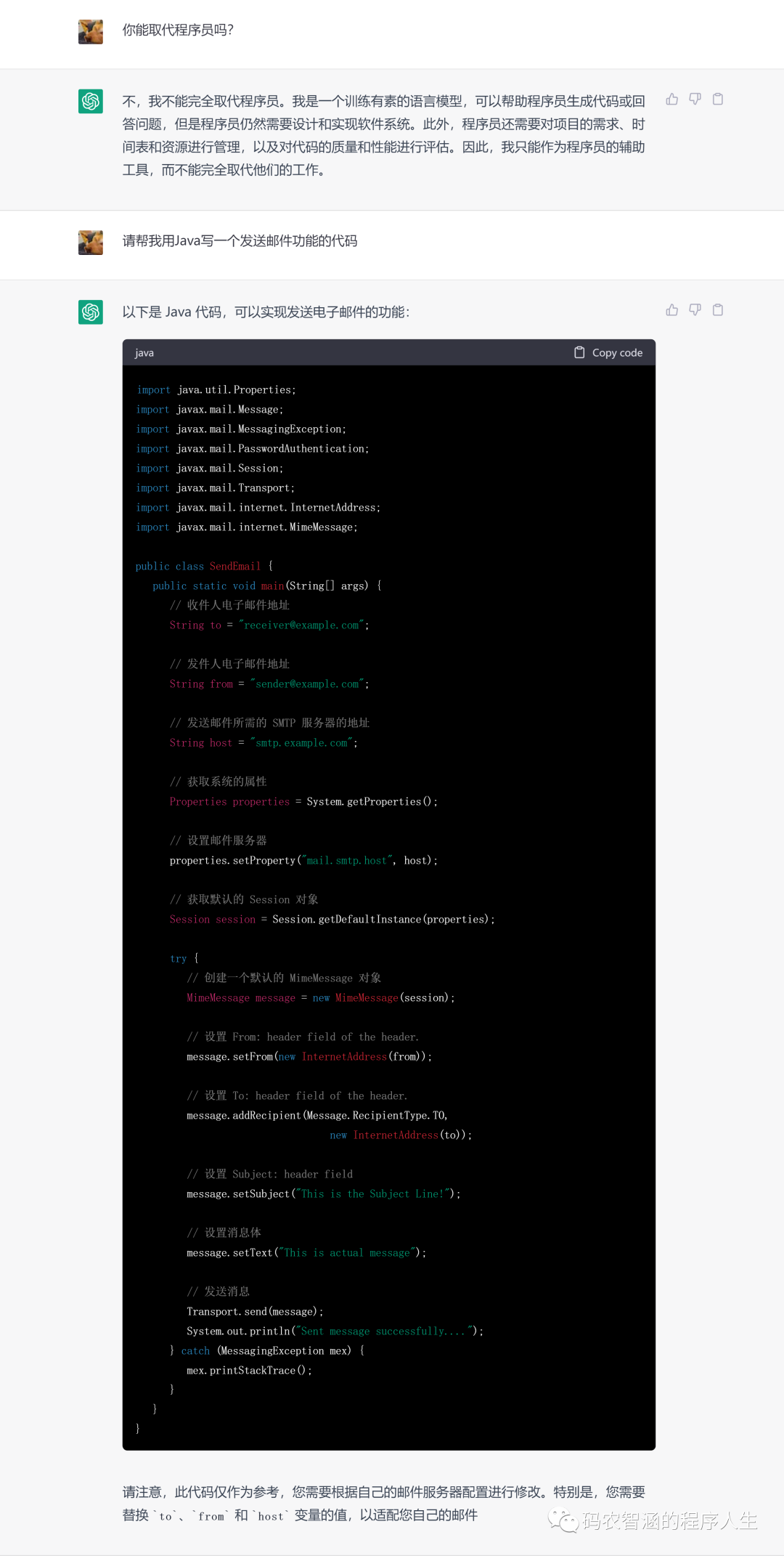 有人说ta能取代程序员,我也咨询了一下他自己的意见,他是这么认为的。