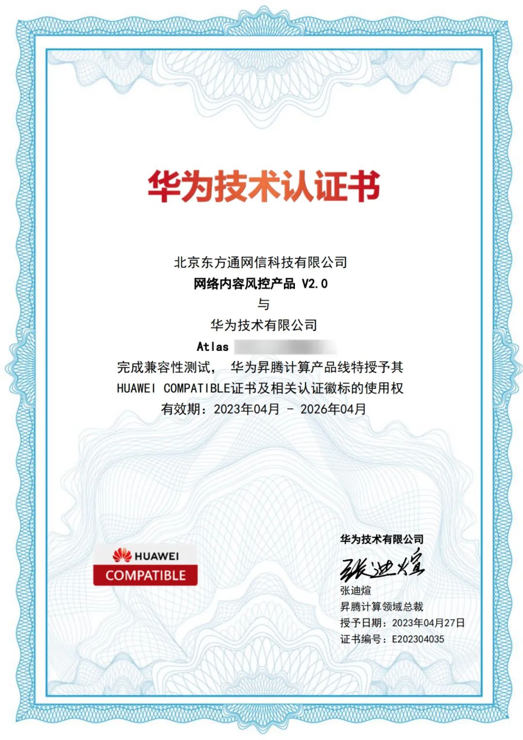 近期,东方通网络内容风控产品V2.0顺利通过华为技术认证,与华为昇腾Atlas系列完成兼容性测试,将能够以华为昇腾的 Atlas 系列作为内容识别算法引擎载体,增强东方通内容风控产品在人工智能技术上的融合优化,同时通过积极融入国产华为昇腾生态,进一步提升应用的安全性、可靠性及关键性应用需求。