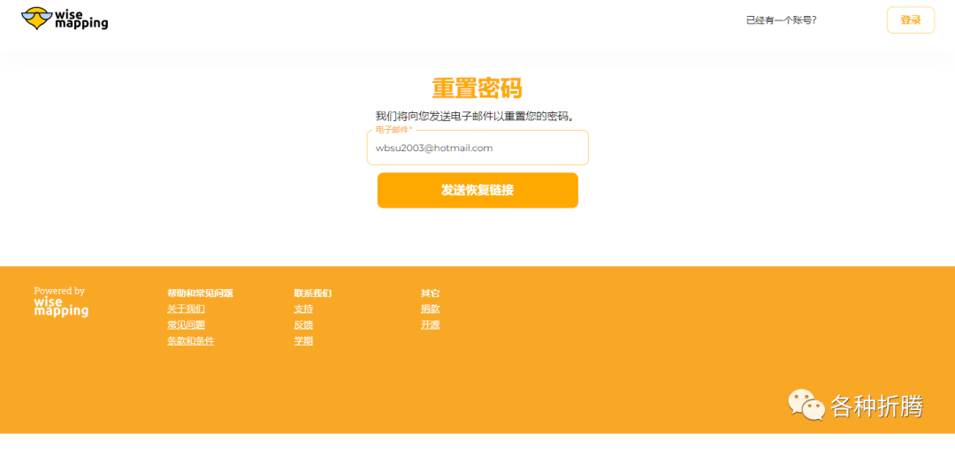 如果你忘记了密码,只要输入你的邮件地址