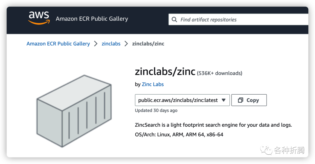 官方的镜像发布在 :https://gallery.ecr.aws/zinclabs/zinc