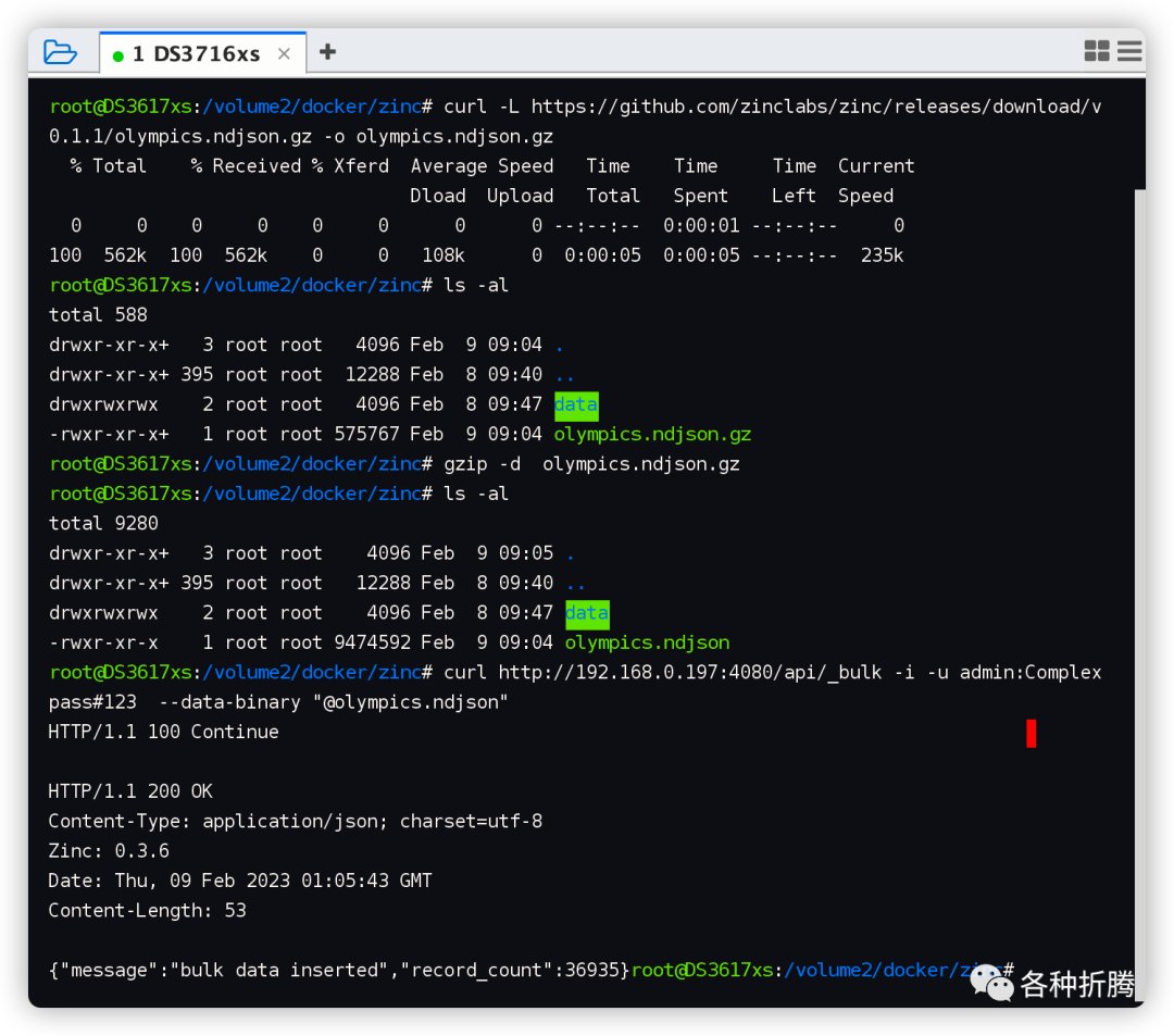 mkdir -p /volume2/docker/zinc/data
