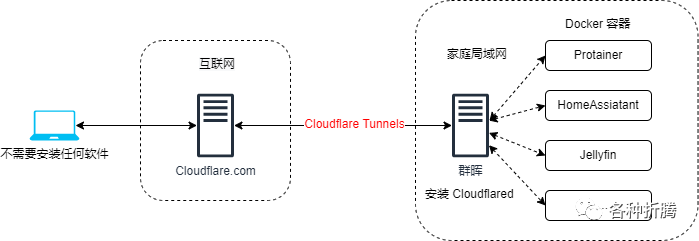 地址:https://laosu.ml/2022/04/06/免费的Cloudflared实现外网访问群晖Using Cloudflare Tunnel with Nginx Proxy Manager : selfhosted