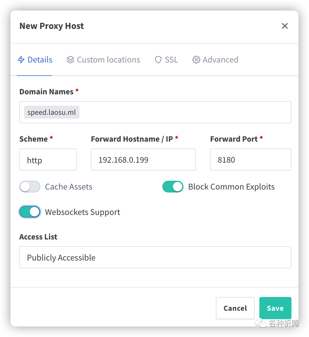 以老苏的测速服务为例,本地访问地址为 http://192.168.0.199:8180