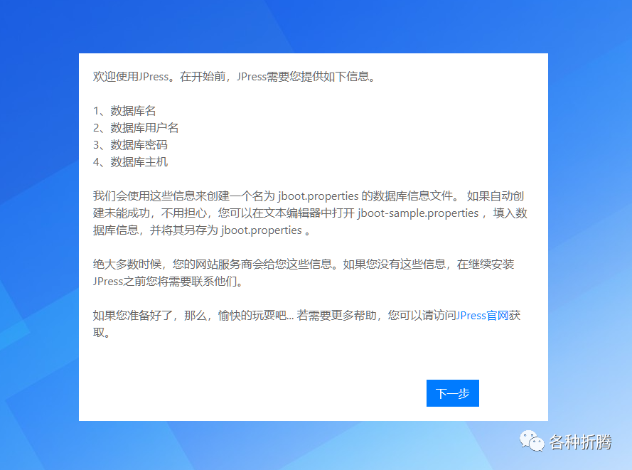 第一次需要进行设置,会自动调整到设置界面,直接点 下一步