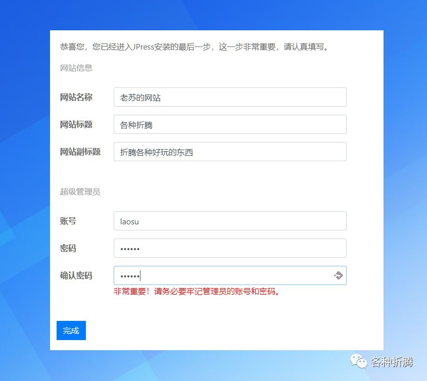 网站地址: http://群晖IP:8882后台管理地址: http://群晖IP:8882/admin