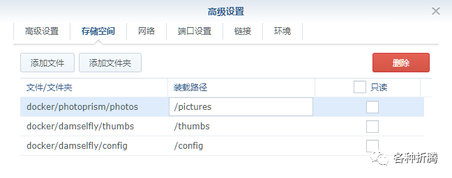 docker/damselfly/config | /config | 存放设置 |