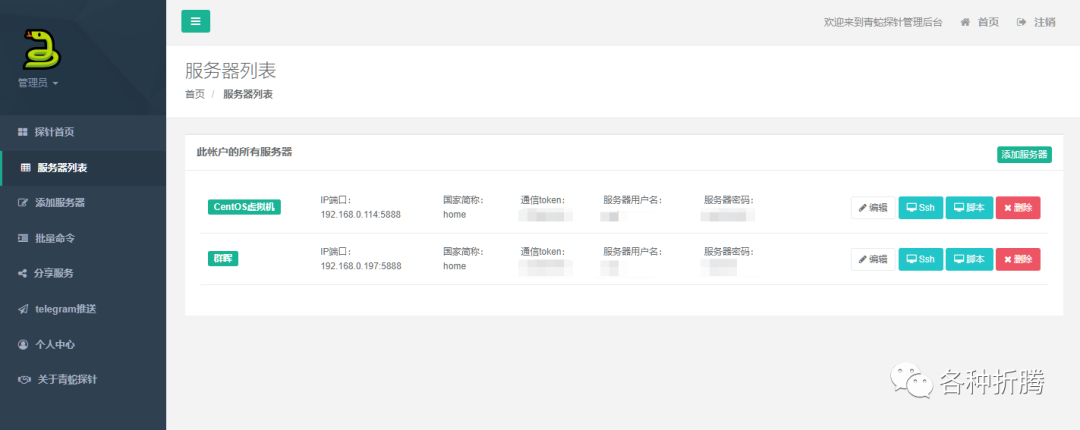 现在服务器列表中已经有了两台设备