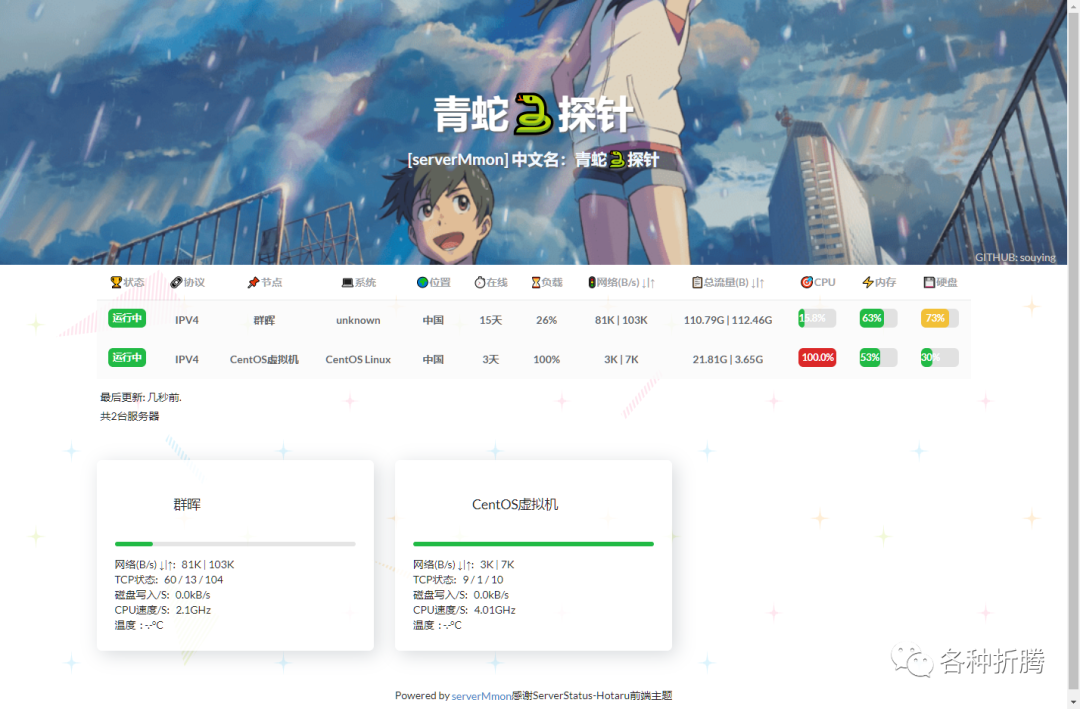 开发的一个酷炫高逼格的云探针、云监控、服务器云监控、多服务器探针。