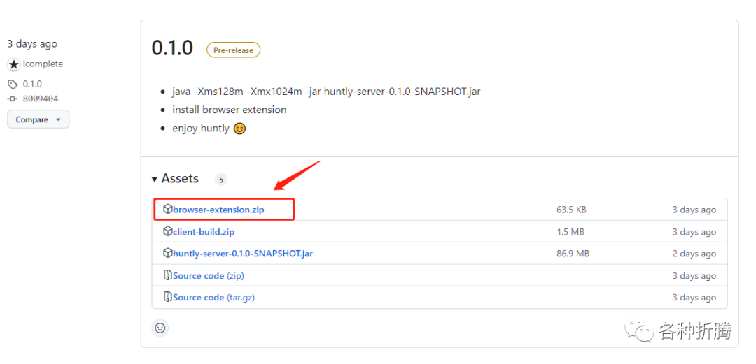 在 https://github.com/lcomplete/huntly/releases 页面下载 browser-extension.zip