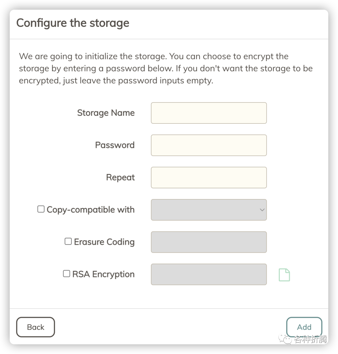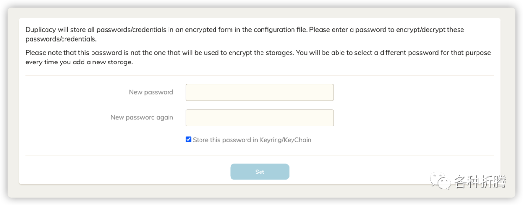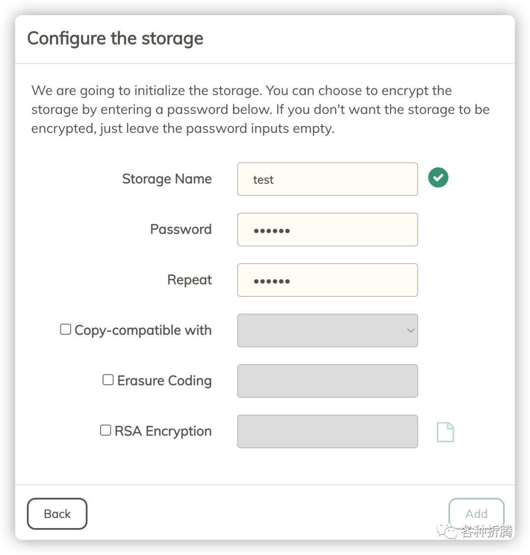 :可选的密码来加密存储。如果存储在云服务上,强烈建议使用加密密码。如果您不想加密存储,可以将密码输入留空。Copy-compatible with