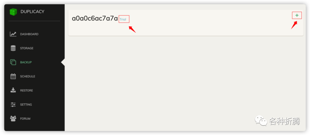 旁边有一个 Trial 链接,表示 Duplicacy Web Edition