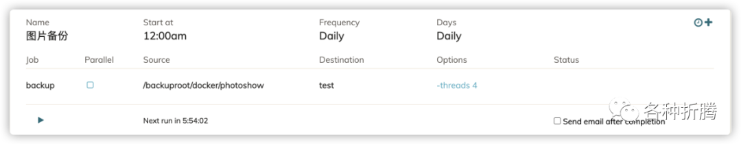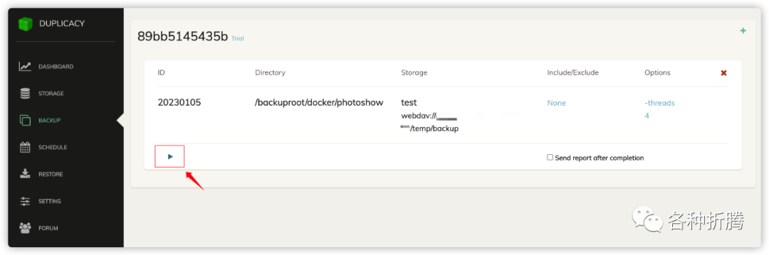 可以通过单击每个备份底部的三角形按钮来手动运行备份。