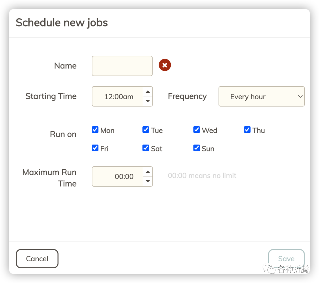 该时间表还没有任何工作。您可以通过单击 Add a job