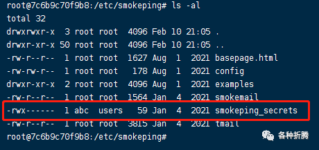 # 查看 /etc/smokeping/smokeping_secrets 中的密码