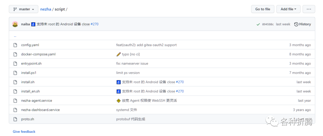 安装所需要的文件都能在 https://github.com/naiba/nezha/tree/master/script 找到,config.yaml