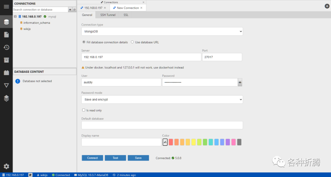 ,安装时老苏没有把端口映射出来,所以为了测试需要映射出来,否则是连不上的