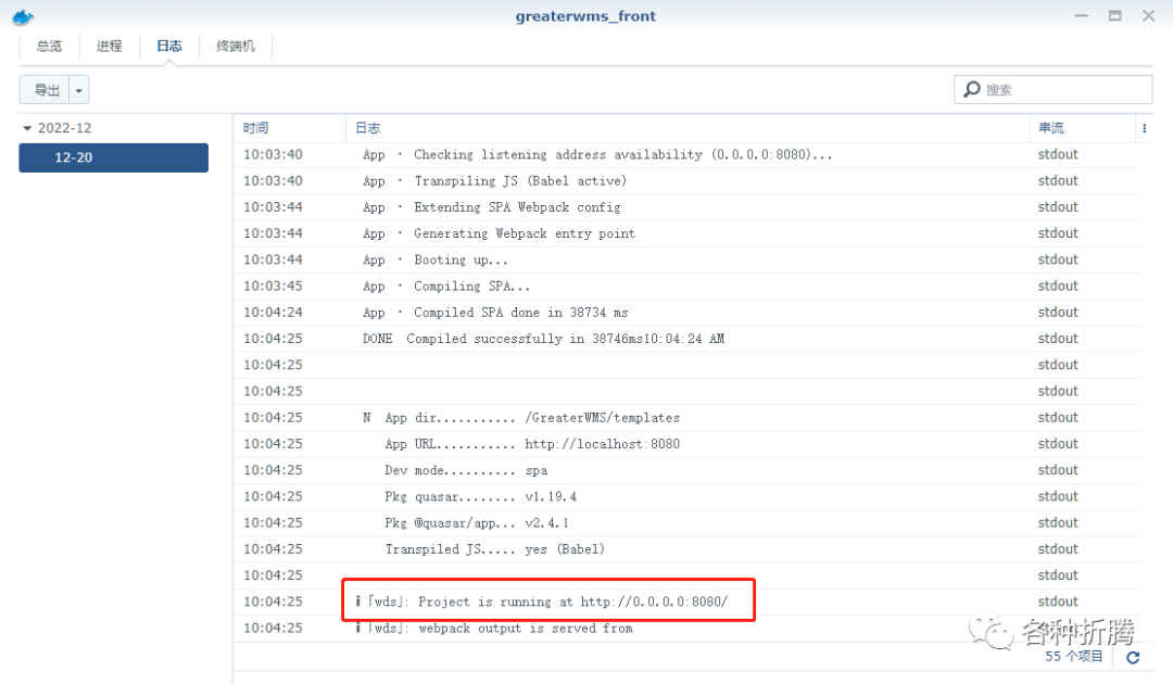 前端要看到 ℹ 「wds」: Project is running at http://0.0.0.0:8080/