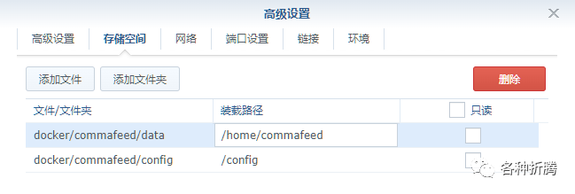 docker/commafeed/data | /home/commafeed | 存放数据库 |
