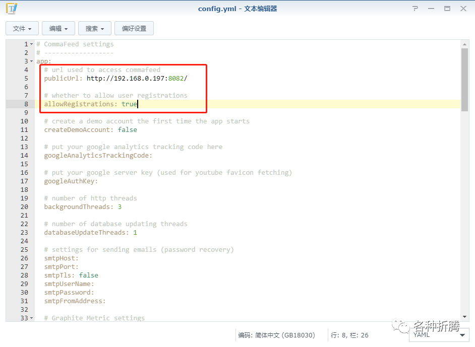 这个版本会在我们映射的卷中找到原始的 config.yml