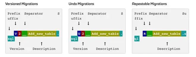 在Flyway中变迁(migrations)定义的更细,包含如下三种: