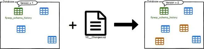 对于Flyway,对数据库的所有更改都称为变迁(migrations),等同于liquibase中的changeset。