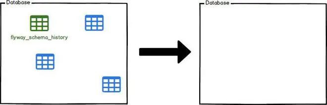 Clean: 清除掉对应数据库Schema中所有的对象,包括表结构,视图,存储过程等,clean操作在dev 和 test阶段很好用;(PS:不能用在product环境)
