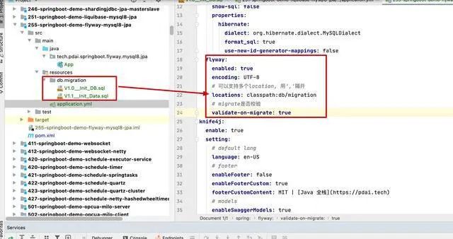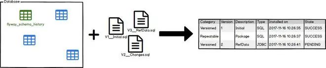 Flyway支持SQL和Java两种类型的脚本,你可以将脚本打包到应用程序中,在应用程序启动时,由Flyway来管理这些脚本的执行,这些脚本被Flyway称之为migration。
