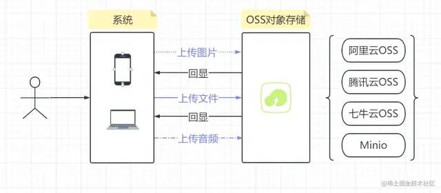 OSS对象存储在目前大部分项目中必不可少的存在,如下图所示。
