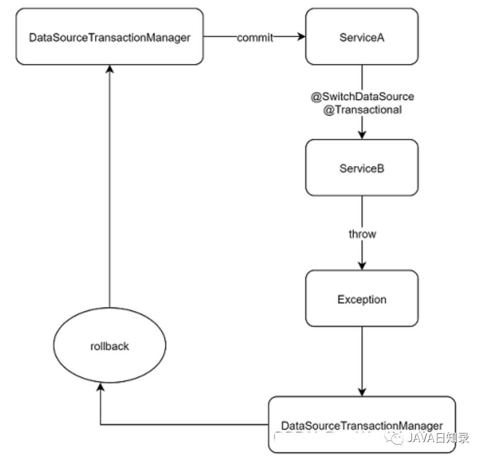 方法不执行操作,rollback执行的前提是连接执行close才生效。这样不管是使用哪个ORM框架,其自身事务管理都将失效。事务的控制就交由MultiTransaction