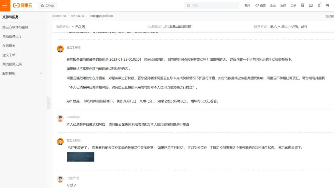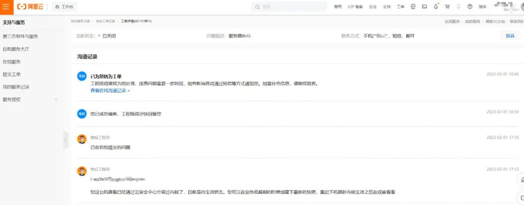 23. 那个低版本的就是故障机器,确认相关信息后,联系阿里云提交工单。