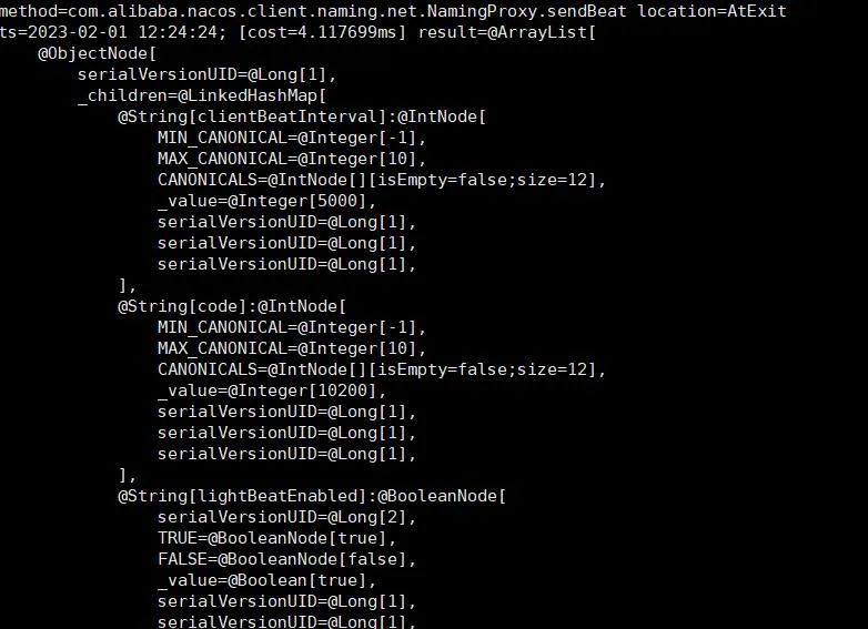 9. 翻看 nacos-client 源码,找到心跳函数(nacos2.x 不是这个),使用 arthas 监听心跳包,尝试能找到心跳丢失的证据,贴上当时的记录。